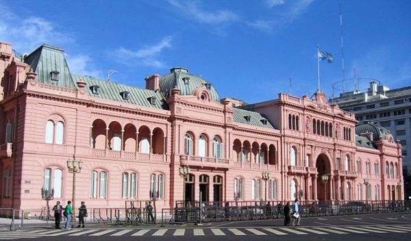 Современное здание правительства в Буэнос-Айресе или Розовый дом стоит на месте, где изначально был построен форт Хуана-Бальтазара Австрийского. В 1713 году его перестроили в замок Сан-Мигель, служивший резиденцией колониальных властей Испании. Надо сказать, что многие правители Аргентины так или иначе приложили руку к Casa Rosada, изменяя его на свое усмотрение. В итоге получилось довольно интересное строение во французском стиле с элементами итальянской архитектуры. Неоклассические очертания замок приобрел в 1825 году по инициативе тогдашнего президента Бернардино Ривадавия. В таком виде он просуществовал до 1857 года, когда его разобрали ради возведения таможни. Так пожелал другой глава государства - Хусто Хосе де Уркисы. Таможня была построена в итальянском стиле архитектором Эдвардом Тейлором и стала самым большим городским строением. Но уже в 1862 году уцелевший во время разрушения флигель замка стал резиденцией президентов Бартоломе Митре и Доминго Сармьенто. Здание перестроили, добавили внутренние дворы и патио. Изменился и цвет флигеля: из темно-коричневого его перекрасили в розовый. Цвет был символичным и означал примирение двух противоборствующих политических партий - федералистов и унитаристов. Их цвета были красный и белый соответственно.Через двадцать лет резиденция снова несколько изменила свой облик. По распоряжению президента Хулио Рока, здание оформили в стиле почтамта, построенного рядом с резиденцией в 1873 году. Спустя два года их и вовсе объединили в единое архитектурное сооружение. Но и это было не последнее в реконструкции Casa de Rosada. В 1989 году после сноса таможни на освободившемся месте соорудили восточное крыло резиденции президента.Сейчас в Casa de Rosada располагается рабочий кабинет президента страны, а живет он в резиденции Квинта-де-Олива, которая находится в окрестностях Буэнос-Айреса. Кроме того, в Розовом доме находится Зал бюстов, в котором выставлены все законно избранные правители Аргентины. В 2003 году там был открыт бюст Рауля Альфонсина. А в доживших до наших дней помещениях форта Сан-Мигель работает дворцовый музей.