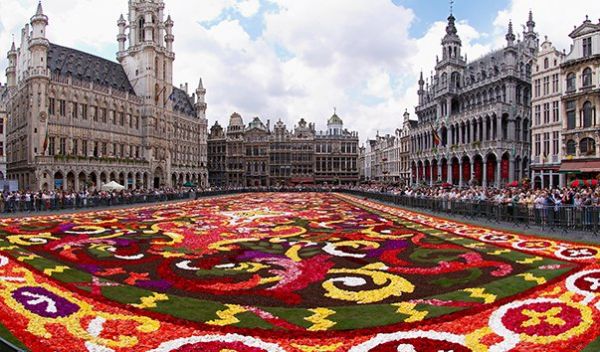 Цветочный ковер, пожалуй, самое грандиозное ежегодное шоу в жизни Брюсселя. Официально первый из них в своем нынешнем виде был создан в 1971 году на площади Гран-Плас ландшафтным дизайнером Стотемансом. С начала 50-х годов он экспериментировал с созданием ковров из цветов, сначала маленьких и простых, а затем уже посложнее. В основном, все они были выполнены из бегоний, которые так любил мужчина. Ковры стали быстро набирать популярность, а Стотеманс понял, что такой вид искусства - отличное средство для продвижения своих любимых цветов.После нескольких лет попыток и расчетов архитектор стал экспертом в создании превосходных цветочных ковров всевозможных расцветок, узоров и конструкций. Его слава распространилась, и заказы начали приходить уже не только из Бельгии, но и из других стран по всему миру.Фактически ковры выполняются на основе плана, разработанного заранее, и состоящего из нескольких этапов. Все обычно начинается за год вперед. Изготавливаются модели и макеты. Ковры очень часто иллюстрируют какую-нибудь тематику, например, празднование значимых событий или символику города. Как только все это выполнено, флористы приступают к подбору цветов и их расцветок, после чего сотни садоводов и энтузиастов начинают кропотливую работу по созданию прекрасного цветочного ковра, которая длится более 4 часов.