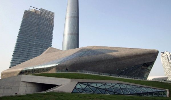 "Оперный театр Гуанчжоу стал одним из многих современных зданий, которые кардинальным образом изменили традиционный облик привычного всем Китая, создав новую культурную столицу страны. Завершение строительства здания нового оперного театра стало одним из главных архитектурных событий 2011 года. Архитектора Захи Хадида вдохновил окружающий ландшафт: театр должен был находиться в дельте Жемчужной реки с видом на раскинувшийся рядом город.Архитектура современного оперного театра выражает идею текучести и переливов. Театр состоит из двух залов, один из которых выполнен из стекла, а другой из стали. При этом оба перетекают один в другой, образуя сложную структуру. Внутри здания тоже прослеживают ассоциации с естественной природой. Главный зал напоминает пещеру с несколькими "слоеными" ярусами и галереями."