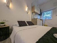 Quirky Studio w Floor Heating, 65'' TV, Washer-Dryer & Patio