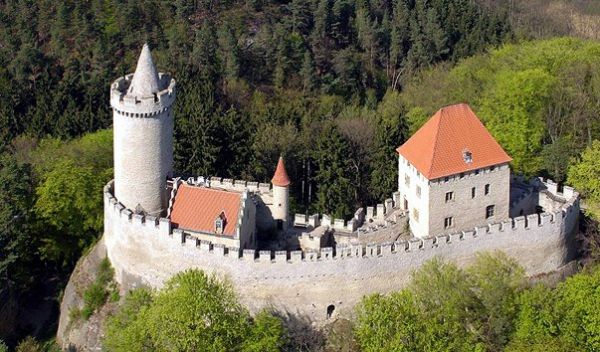 Средневековый замок Кокоржин находится в 60 километрах к северу от Праги и в 10 километрах от города Мельник на песчаной возвышенности в долине потока Пшовка. Крепость была построена в 1320 году в готическом стиле с элементами барокко. В XV веке был завоеван и разрушен гуситскими войсками на несколько десятилетий. Здесь прятались местные разбойники. В связи с чем история замка послужила сюжетом для авантюрных и романтических романов чешских писателей, а также облик крепости вдохновлял художников, чьи полотна запечатлели мощь крепости и красоты окружающего непроходимого леса. На территории замка располагается цилиндрические смотровая башня, высота которой составляет 38 метров.
