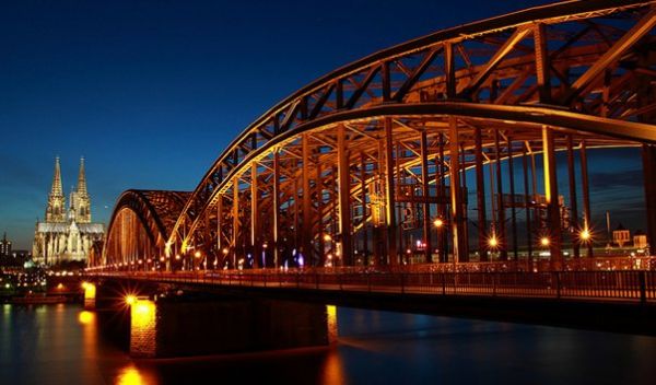 Мост Гогенцоллернов — это стальной арочный железнодорожный мост, пролегающий через реку Рейн. Он расположен между двумя железнодорожными вокзалами города, в сутки по нему проходит около 1200 составов. Неподалеку от конструкции находится знаменитый Кельнский собор, являющийся визитной карточкой города.Мост был торжественно открыт в мае 1911 года. Въезд на мост украсили неороманскими башнями, которые были возведены по проекту известного берлинского архитектора Франца Швехтена. Они отлично контрастировали с готической архитектурой Кельнского собора. По обеим сторонам Моста Гогенцоллернов были установлены прекрасные конные статуи германских императоров из династии Гогенцоллернов - Вильгельма I, Фридриха III, Фридриха Вильгельма IV, Вильгельма II, а также монументы прусских королей. Во время Второй Мировой войны данный мост был наиболее загруженным в Германии. Во время бомбардировок Кельна британской авиацией, он сильно пострадал, а в марте 1945 года был полностью разрушен в результате подрыва опор. Восстановление сооружения началось сразу после войны, движение было возобновлено в 1948 году. Башни у въезда на мост решили не восстанавливать и в 1958 году они были полностью разобраны.