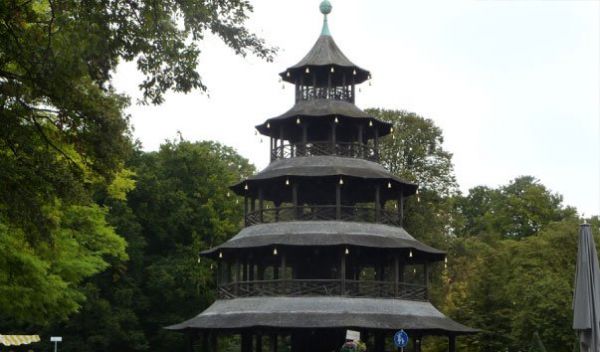 Китайская башня, расположенная в Южной части Английского сада в немецком городе Мюнхен, представляет собой экстравагантное сооружение из дерева высотой 25 метров. Она была построена в 1789-1790-х годах архитектором Йоханом Баптистом Лехнером по чертежам Йозефа Фрея.Образцом для Китайской башни стала Большая Пагода в Королевском парке Лондона, которая, в свою очередь, была построена по образцу фарфоровой пагоды в саду императора Китая. В 1944 году во время бомбардировки города Китайская башня сгорела, ее восстановили максимально приближенно к оригиналу в 1952 году. Рядом с башней находится второй по величине городской пивной сад.
