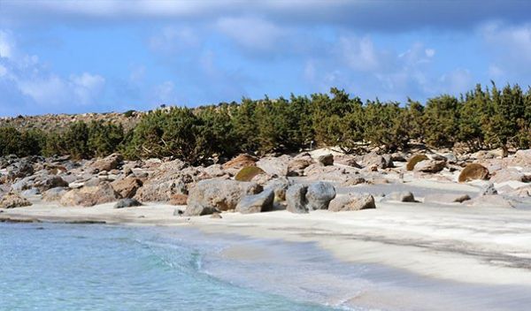 "Кедродасос - это небольшая роща серо-зеленых можжевельников между высокими холмами и морем на крайнем юго-западе Крита, недалеко от острова Элафониси. Буквальный перевод - "Кедровый лес", хотя растут там крупные можжевельники, а не кедры. Впрочем, это место посещают не столько ради изучения местной флоры, сколько ради его волшебных пляжей.Пляжи здесь покрыты как галькой, так и абсолютно белым песком. Вода чистейшая, нежно-бирюзового цвета. Кедродасос считается одним из немногих оставшихся подлинно нетронутых пляжей Крита. В силу своей уединенности и отсутствия какой-либо инфраструктуры он является настоящим раем для «дикарей» и любителей свободного пляжного отдыха без купальных костюмов. Кроме того, Кедродасос считается идеальным местом для любителей винд- и кайтсерфинга.До Кедродасоса не так просто добраться со стороны суши - склон очень крутой, но наверху есть гравийная дорога, приводящая на небольшую парковку. От Элафониси до Кедродасоса всего около километра, так что можно дойти пешком, однако потребуется приличная обувь и головной убор. Тропа маркирована черно-желтой краской и пирамидками из камней."