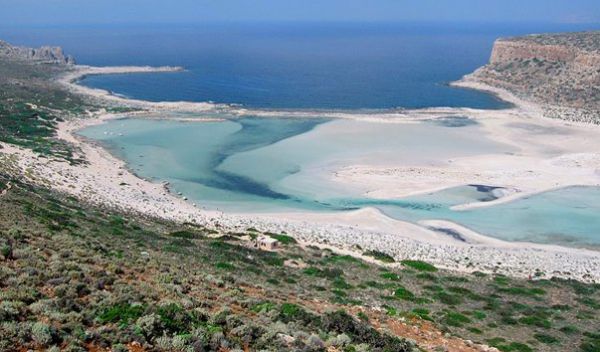 Поистинне райское место для отдыха в Греции - это бухта Балос на северо-западном побережье Крита, там, где берег омывается сразу тремя морями: Эгейским, Ливийским и Ионическим. На Балос можно доехать на машине (лучше джипе, так как дорога сложная), или, что проще, но красивее - на корабле, и заодно полюбоваться на эту бухту с моря. Особо примечателен прекрасный пляж бухты Балос, очень любимый туристами. Пляж Балос, расположенный в 60-ти км от города Ханья, считается самым красивым пляжем региона. Находится пляж в северо-западном краю острова Крит, на полуострове Грамвуса.Пляж дикий, не имеет практически ничего, кроме потрясающих берегов и великолепного и чистого моря. Найти шезлонги или хотя бы лежаки практически невозможно, но в это есть и своя прелесть.Вода бухты насыщена уникальным составом минералов, которые образуют необычайное явление лазурной воды. Ученые подсчитали, что в водах бухты насчитывается порядка 14-ти оттенков. Стоит подчеркнуть, что именно данный пляж считается самым красивым на всем Средиземноморье - не зря ведь принцесса Диана и принц Чарльз избрали именно это место для своего медового месяца.