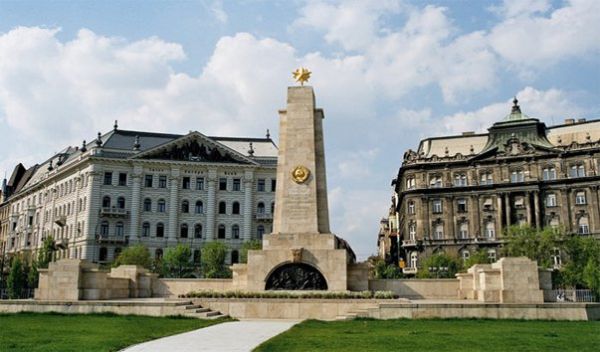 Единственный памятник советским воинам в Будапеште, пережившим 1990 годы, был установлен в 1945 году, он представлял собой обелиск с позолоченным барельефом и надписью: «Слава советским воинам-освободителям!».Он расположен в центре города между телецентром и американским посольством, находившееся ранее под ним воинское захоронение в 1958 году было перенесли на городское кладбище.В 2002 году летом памятник был демонтирован для реконструкции, по согласованию с МИД РФ, а уже в мае 2003 года памятник вернули на прежнее его место.Довольно таки многочисленное число раз он становился объектом нападений венгерских националистов.