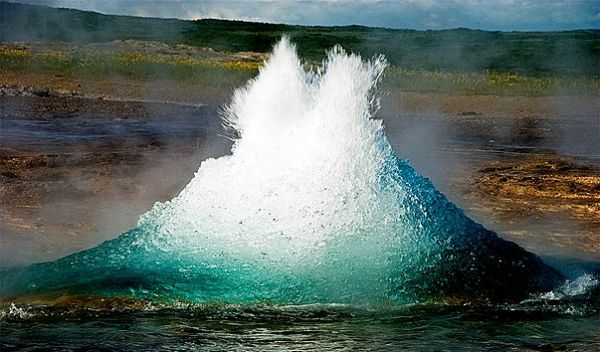 "Строккюр - гейзер в юго-восточной части Исландии. Он расположен в долине Хаукадалур. Строккюр можно назвать "младшим братом" знаменитого Великого Гейзера. Два этих гейзера находятся всего в 40 метрах друг от друга. Однако, в отличие от Великого Гейзера, который может бездействовать несколько лет, Строккюр извергается каждые 2-6 минут. Столпы воды, выпускаемые гейзером Строккюр, могут достигать до 20 метров в высоту. Иногда этот гейзер может извергаться до трёх раз подряд. Это невероятное зрелище поражает своим великолепием. Помимо гейзеров, в долине Хаукадалур находятся также известный водопад Гюдльфосс и прекрасное озеро Блези."