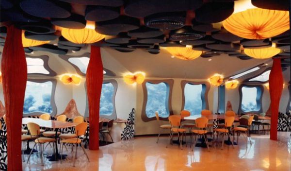 Ресторан Red Sea Star расположен на побережье Красного моря, а точнее на 5 метров ниже уровня моря. Это подводное кафе пользуется большой популярностью у туристов, особенно у путешествующих всей семьей.Стены ресторана состоят из толстых окон, позволяющих наблюдать красивые кораллы, рыбы и остальной подводный мир. Его интерьер также выполнен в морском стиле и оформлен изображениями обитателей моря. Все это создает непревзойденную атмосферу, которая вызывает особый восторг у детей.Кухня ресторана предоставляет большой выбор блюд из рыбы и морепродуктов. Различные закуски, основные блюда и напитки удовлетворят любого. Конечно, основную роль здесь играет не кухня и разнообразие блюд, а вид из окон и возможность наслаждаться красотой подводного мира. Цены в заведении - средние.
