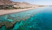 Платный пляж у Кораллового рифа на западном побережье Эйлатского залива в Эйлате. Уникальное место с открытым дельфинариумом и оборудованной территорией, единственный пляж в Эйлате, в котором растительность настоящего ботанического сада создает естественную атмосферу и тень тропической рощи.
