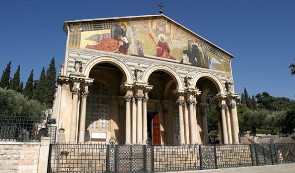 Храм Всех Наций (или Церковь Агонии Господней) – храм, который расположен в Гефсиманском саду.Первая постройка относится ко второй половине IV века, но она была разрушена персами в 614 году. Она была восстановлена крестоносцами, но вновь подверглась разрушению в 1187 году. После археологических раскопок в конце XIX века, которые подтвердили наличие церковных строений, решили возвести новую церковь.Фундамент был заложен в 1919 году. Храм возводился по проекту Антониа Берлуцци. Строительство закончилось в 1924 году. Храм получил свое название благодаря тому, что в его постройке участвовали многие католические страны. Гербы каждой страны расположены в куполах храма.Согласно преданию, именно на этом месте, где сейчас стоит Храм, Иисус молился в последнюю ночь перед своим арестом.