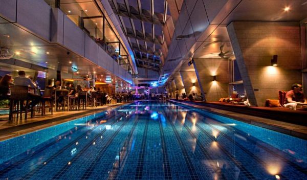 Прямо посреди помещения расположен большой красиво подсвеченный бассейн, несущий исключительно декоративную нагрузку - купаться в нем не принято, однако наслаждаться его видом не возбраняется. Правда, бассейн - не единственная деталь интерьера Скай Бара, притягивающая внимание посетителей. Из окон бара открывается потрясающий вид на башни-близнецы Петронас, особенно эффектно смотрящиеся ночью. Разумеется, бары с такими видами и интерьерами по карману не каждому - здесь отдыхают в основном богатые господа, готовые платить только за один мохито 20 долларов. Ну, а элитные сорта виски еще более сужают круг потребителей, но хорошее заведение редко бывает общедоступным. В 2009 году Скай Бар был признан лучшим баром в Малайзии.