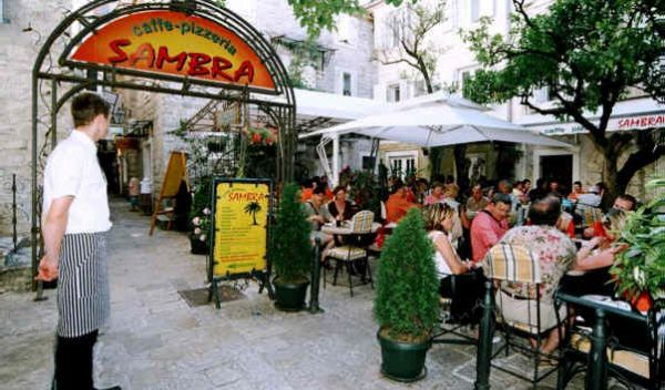 Знатоки итальянской кухни и простые любители свежей горячей пиццы по достоинству оценят ресторан SAMBRA. Он находится в очень живописном месте, и в летнее время года все столики выносят на просторную веранду, с которой открывается великолепный вид на окрестности Старого города. SAMBRA - это старейший и очень авторитетный итальянский ресторан, который очень щепетильно относится к приготовлению блюд.В любое время года ресторан предлагает большой выбор блюд итальянской кухни и некоторые блюда местной национальной кухни. Здесь можно заказать пасту, пиццу, горячие и холодные закуски, салаты, блюда из рыбы и мяса. Помимо традиционных итальянских угощений, здесь можно попробовать редкие коллекционные вина, а фирменные десерты считаются особой гордостью Restaurant-pizzeria SAMBRA. Цены вас приятно удивят: средний обед на одного человека обойдется всего в 20-25 евро.