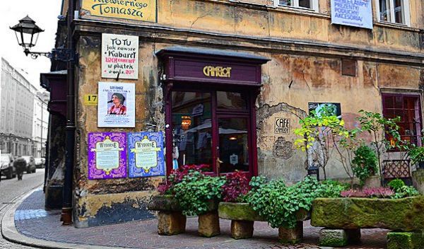 Кафе Camelot – интересное кафе, разместившееся в подвале XIII века, которое славится своим кабаре. Интерьер кафе выполнен в стиле XVIII века, стены украшены картинами польских художников. Вы здесь также найдете скульптуры, сувениры и предметы народного искусства. На столах всегда разложены иностранные газеты, что создает атмосферу кафе начала XX века.Меню кафе предлагает различные сэндвичи, пироги, шарлотку, французские салаты и многое другое. Здесь всегда можно провести приятный вечер. Кабаре Loch Camelot и развлекательная программа подарят вам прекрасное настроение и положительные эмоции.