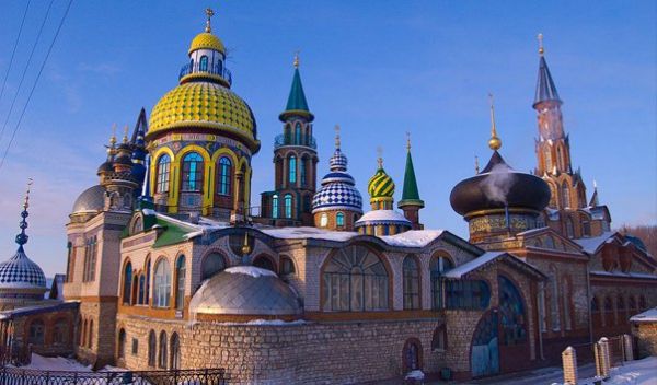 Храм всех религий – детище архитектора Ильдара Ханова, вдохновившегося на столь непростое дело в странствиях по Тибету и Индии, где он изучал восточное искусство, буддизм, йогу, тибетскую и китайскую медицину. Возведение храма началось в апреле 1994 года на деревенском огороде Ханова в пригороде Казани. У строительства нет постоянных спонсоров. Все осуществляется на средства Ильдара Ханова и пожертвований людей. Дом казанского художника Ильдара Ханова представляет собой оригинальное здание, объединяющее в комплексе 16 мировых религий, рядом находятся и мечеть, и церковь, и буддийская пагода, и Синагога, строятся купола религий исчезнувших цивилизаций. Богослужения в храме, который должен будет сочетать в себе произведение высокого искусства и культурный центр, проводиться не будут. По мнению Ильдара Ханова, все мировые религии равновелики. А потому нет смысла их разделять и вести религиозные споры: Бог - внутри каждого из нас.