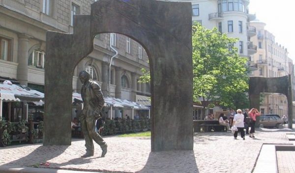 Памятник поэту Булату Окуджаве был установлен в 2002 году в центре Москвы, на углу Арбата и Плотникова переулка. Его авторами стали скульптор Георгием Франгулян и архитекторы Игорь Попов и Валентин Прошляков. Место для памятника было выбрано неслучайно – в доме № 43 на Арбате поэт жил долгое время, этой улице он посвятил свои знаменитые строки «Ах, Арбат, мой Арбат, ты мое Отечество…».Авторы памятника попытались художественными средствами воссоздать кусочек старого арбатского двора. Монумент включает в себя две бронзовые арки, символизирующие подворотню, две скамейки, фигуру Булата Окуджавы высотой примерно 2,5 метра, его бронзовую тень, уходящую во двор, и живое дерево. Скульптура поэта очень динамична: кажется, что Окуджава размашисто шагает навстречу прохожим. Памятник торжественно открыли в день 9 мая, и эта дата была выбрана неслучайно. Во-первых, это был день рождения поэта, а во-вторых, - День Победы, во имя которой Окуджава в 1942 году в возрасте 17-ти лет ушел добровольцем на фронт. Песни на стихи Окуджавы звучат более чем в восьмидесяти фильмах, а песня из фильма «Белорусский вокзал» стала настоящим гимном фронтовиков.