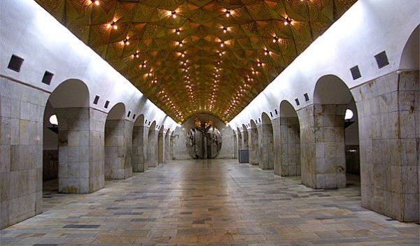"Станция метро "Авиамоторная" была построена в советское время, в самом конце 1979 года. Расположена она на Калининской ветке метрополитена. Есть планы сделать ее началом нового радиуса метро. Но пока это перспектива неопределенного времени."Авиамоторная", будучи вполне типовой станцией, отличается оригинальным оформлением. Причудливое пространство создает потолок, собранный из обработанных под золото пирамидок. "Мятая" конструкция отливает бликами и словно парит над платформой. Лампочки, углубленные в пирамиды, сияют как звезды, подсвечивая разнообразные рисунки на поверхностях пирамид. Выглядит это почти сказочно.Практически все остальные поверхности станции отделаны светлым мрамором, пол - светлым гранитом разных оттенков. Торцевую стену украшает скульптурная композиция, в центре которой - Икар.Попасть на станцию можно через подземный переход, надземного вестибюля у нее нет."