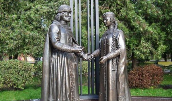 "Русские православные святые, Петр и Феврония стали символом любви и верности в нашей стране, им посвящен соответствующий праздник. С 2011 года в Ростове-на-Дону есть памятник, посвященный этим героям. Теперь парк Октябрьской революции - обязательное место "паломничества" молодоженов.Петр, в нарядном кафтане с накидкой, держит за руку прекрасную Февронию с роскошной косой, собираясь надеть ей на палец обручальное кольцо. По легенде, счастливому событию, которое нам представляет монумент, предшествовало множество событий. Князь Петр был болен проказой после сражения с огненным змеем. По преданию, во сне князь узнал, кто сможет его спасти - простая крестьянка Феврония. Взамен он пообещал жениться на ней, но не сдержал слова. И заболел снова, поскольку Феврония предусмотрительно оставила один струп на теле князя не излеченным. Тогда князь вернулся и они поженились. Их жизнь была не простой. В преклонных летах они ушли в разные монастыри, но умерли в один день и в один час. Легенда о Петре и Февронии, как и их памятник в Ростове-на-Дону, - наше русское наследие, которым приятно гордиться."