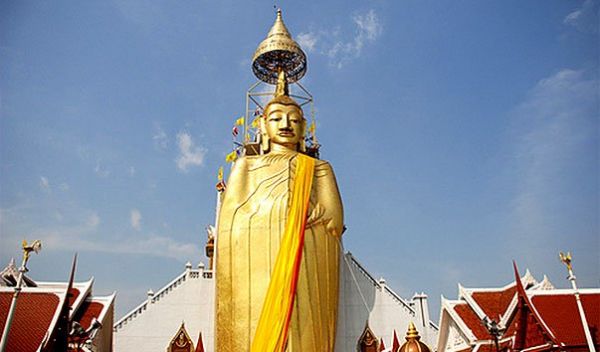 Храм Ват Индра Вихарн – это буддийский храм, главной достопримечательностью которого является одна из самых высоких в Таиланде статуй Будды. Строительство статуи было начато в 1867 году и длилось шестьдесят лет. Полностью статуя стоящего Будды была закончена при короле Раме Седьмом. Она, в отличие от других подобных статуй, построена в современном стиле. Высота статуи составляет тридцать два метра, а вес – пять с половиной тонн.В августе 1987 года на статуе был закреплён пучок волос Будды, специально привезённый из Шри-Ланки. Сейчас на территории храма Индра Вихарн находится действующий буддийский монастырь.