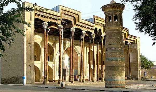 Мечеть и минарет Боло-Хауз – древний архитектурный комплекс, который состоит из мечети XVIII века, минарета начала XX века и небольшого хауза. Комплекс Боло-Хауз находится в старой части Бухары, на площади Регистан. Боло-Хауз раньше служила главной пятничной мечетью города, эмир Бухары постоянно молился в этой святыне.Здание мечети имеет квадратную форму и состоит из двух частей – зимнего четырёхколонного зала с несколькими входами и летнего айвана, который окружает зимний зал с трёх сторон. Особенно впечатляют красивые деревянные колонны айвана, которые сделаны в форме сталактитов и служат поддержкой его для потолка. Интерьер мечети Боло-Хауз выполнен в стиле XIX - начало ХХ века.